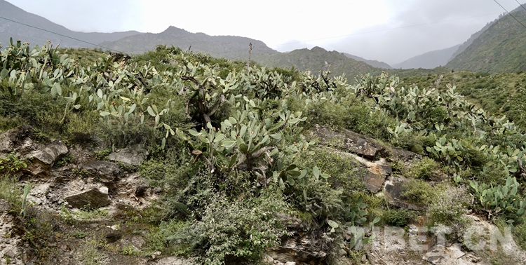 察隅縣屬亞熱帶山地濕潤季風地區(qū),但是由于地形復雜,它的氣候也非常獨特而且復雜多樣,“一山有四季,四季不同天”的神奇自然景觀在察隅天天上演。午餐時我們還在雨林,緊接著我們經(jīng)過了高山草原、然后到了干熱的河谷,3個小時內,跨越三種氣候類型,海拔高差2000多米?!安焱啐垺辈卣Z的意思是“炎熱的峽谷”,有多熱呢?附近生長著許多仙人掌林,還都結了果;我們一邊走一邊減衣服,薄羽絨和厚沖鋒衣全都脫下了,只能穿薄T恤。早先那從晨霧開始一直延續(xù)到午飯后的濕漉漉的感覺也沒了,取而代之的是輕松和干爽。