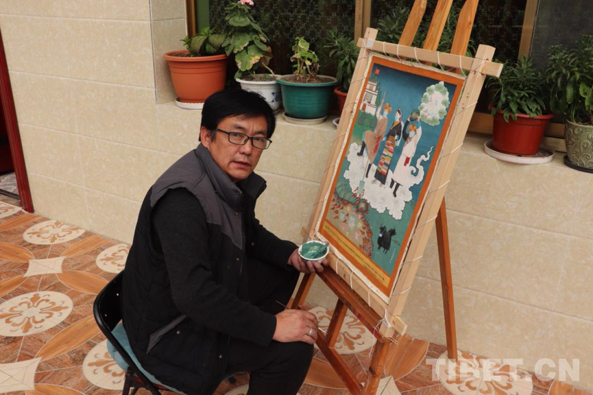 繪制完戰(zhàn)“疫”主題唐卡,旦巴云丹并沒有停下來。他要忙著經(jīng)營堆龍日姆勉唐派唐卡藝術農(nóng)民專業(yè)合作社。這個自2015年成立的合作社,已有15名群眾參與其中。旦巴云丹要負責他們的唐卡繪畫教學,還要負責合作社產(chǎn)品對外銷售,只有這樣,才能讓周邊的群眾也跟著致富。(中國西藏網(wǎng) 記者/王媛媛 圖片由旦巴云丹提供)
