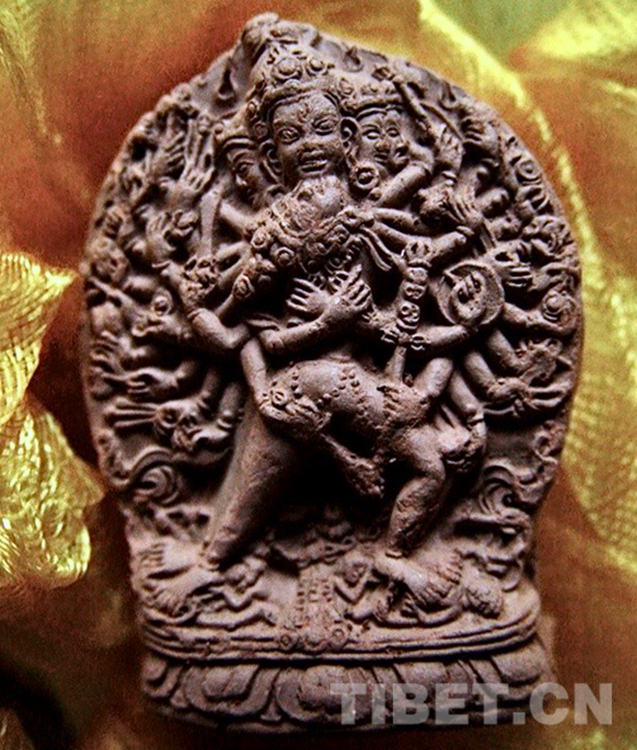 趕緊請匠人找來模具,一看,如此高超的工藝,只能是來自尼泊爾,而且是有一定年頭的上乘之作,一問,果然是他家的老人傳下來的。因為請大威德金剛擦擦的人很少,所以模具很少使用,幾乎沒有磨損。這雙身大威德金剛是“悲智合一”的象征,也正吻合了我寫這本書的深意。于是,我訂下了12000個。