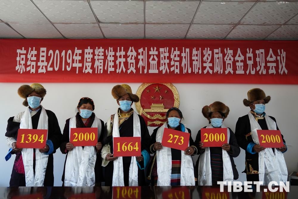 2020年3月26日,瓊結(jié)縣召開(kāi)精準(zhǔn)扶貧利益聯(lián)結(jié)機(jī)制獎(jiǎng)勵(lì)資金兌現(xiàn)會(huì)議,嘎瑪旺堆作為代表參加了會(huì)議,同時(shí)拿到了2000元的獎(jiǎng)勵(lì)資金。當(dāng)時(shí)他說(shuō):“2017年11月,黨的好政策讓我們一家摘掉了貧困戶的‘帽子’。今天領(lǐng)到了縣里獎(jiǎng)勵(lì)資金很激動(dòng),感謝黨、感謝政府?!?/p>