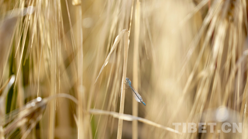 層層疊疊的斗拱,告訴我們藏地也有如此精湛靈巧的木工手藝,斗拱上的彩繪,彰顯著強(qiáng)烈的高原性格和藏式審美。村子里簡陋的小經(jīng)堂,回廊里的柱子上,釘著幾串珠子,不要隨意去撥動它們,那是村里的老人用來記磕頭次數(shù)的。白塔上的佛眼,寥寥幾筆,卻勾出了靈動的眼神,看著你,看著我,洞察一切。金黃色的青稞田里,成熟的香氣充溢著四周的空氣,一只天藍(lán)色的豆娘停在青稞桿上,趕在人們收割糧食之前,擁抱它的秋天。