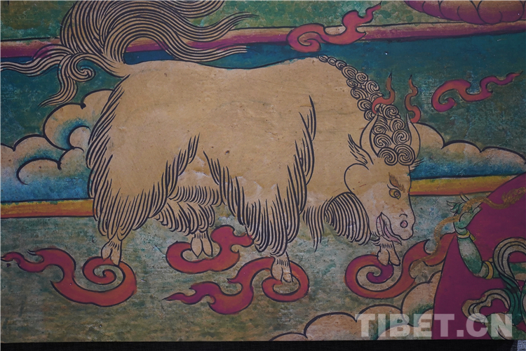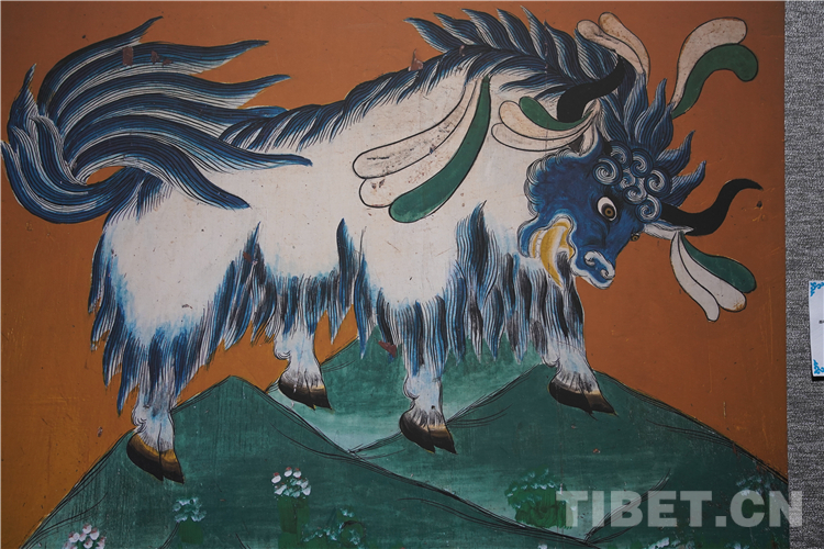 牦牛走進了藏族人民的生活,在幾千年的相處中,牦牛升華成任何一種事物和元素,完美融入了壁畫、唐卡、建筑等多種藝術(shù)創(chuàng)作中。