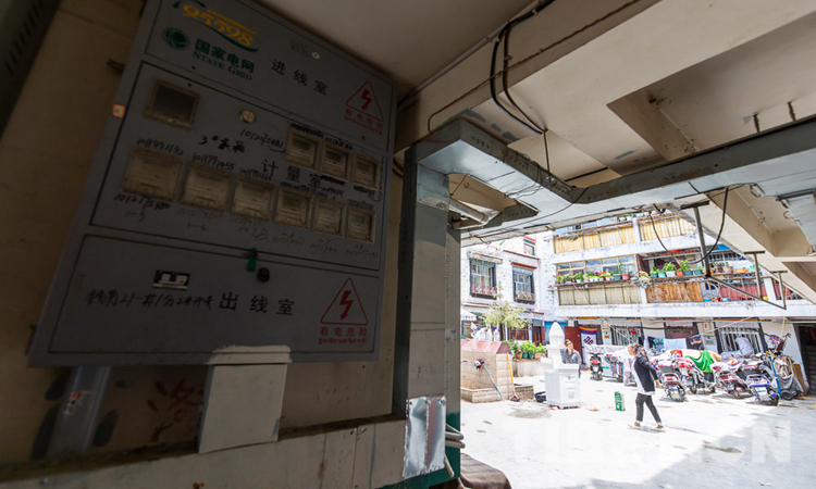 圖為旺堆生活的大院內(nèi)“一戶一表”的電表箱 攝影:趙耀