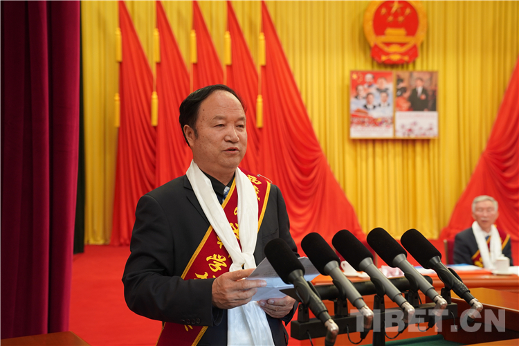 圖為2019年度西藏自治區(qū)科學(xué)技術(shù)獎突出貢獻獎獲得者王保海發(fā)言 攝影:王淑