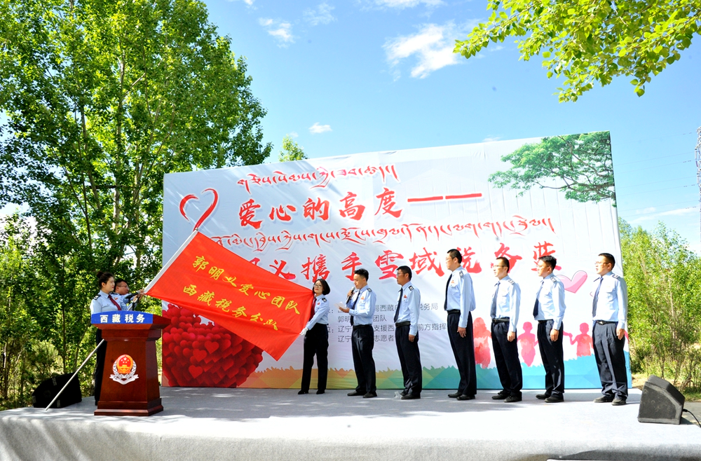 中國(guó)西藏網(wǎng)訊 6月30日上午,郭明義愛心團(tuán)隊(duì)與國(guó)家稅務(wù)總局西藏自治區(qū)稅務(wù)局在西藏拉薩開展“愛心的高度——郭明義攜手雪域稅務(wù)藍(lán)”主題交流活動(dòng)。