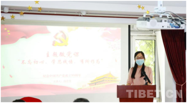 在中國(guó)共產(chǎn)黨建黨99周年之際,中國(guó)西藏信息中心黨支部著眼黨建與業(yè)務(wù)工作融合互促,于7月7日組織“不忘初心、學(xué)思踐悟、有所作為”主題微黨課,以普通黨員、一線記者的鮮活視角和學(xué)思踐悟詮釋新時(shí)代中國(guó)共產(chǎn)黨團(tuán)結(jié)帶領(lǐng)全國(guó)各族人民為實(shí)現(xiàn)中華民族偉大復(fù)興的中國(guó)夢(mèng)而不懈奮斗的生動(dòng)實(shí)踐,不斷激發(fā)全體黨員牢記初心使命、立足崗位建功立業(yè)的內(nèi)生動(dòng)力。