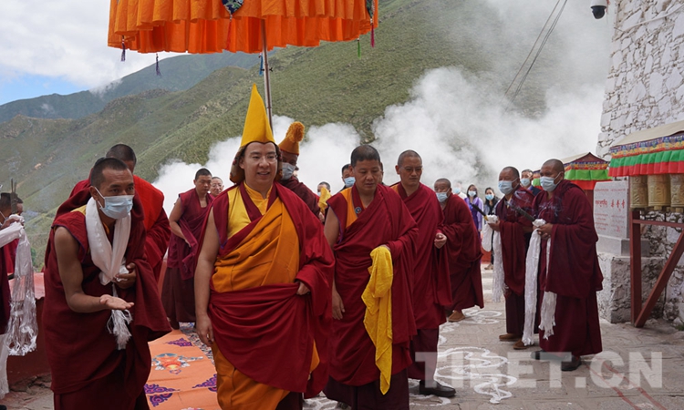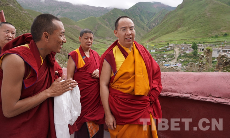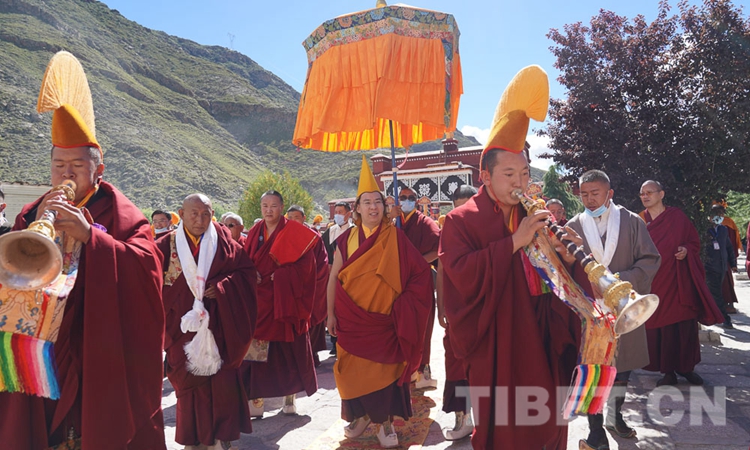 圖為十一世班禪在僧眾引領(lǐng)下走進(jìn)熱堆寺 攝影:王淑