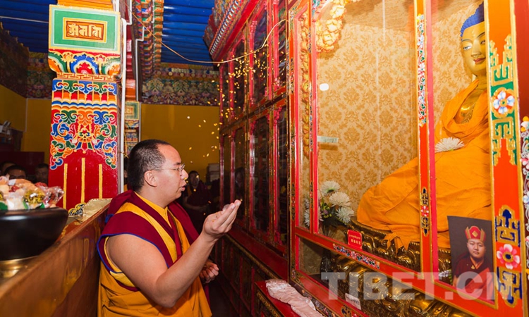 圖為十一世班禪在熱堆寺向佛像敬獻(xiàn)哈達(dá) 攝影:王淑