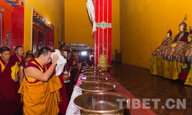 圖為十一世班禪在乳巴寺誦經(jīng)祈愿 攝影:王淑
