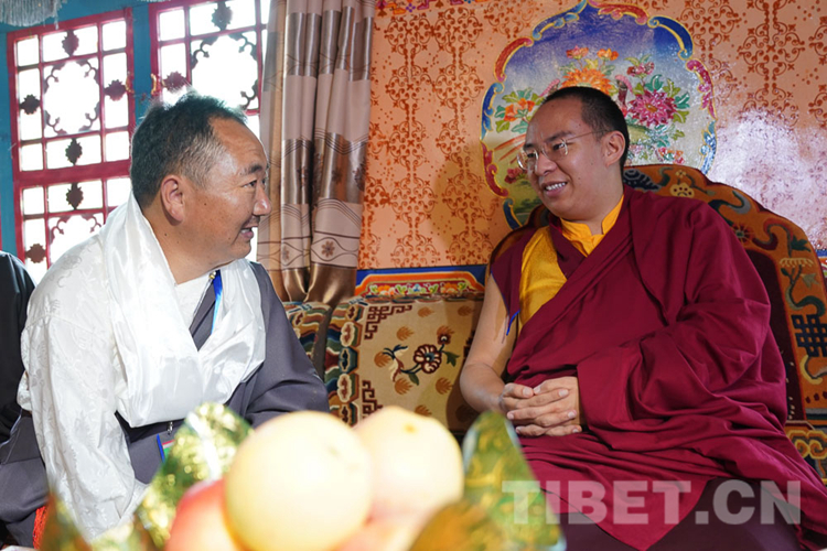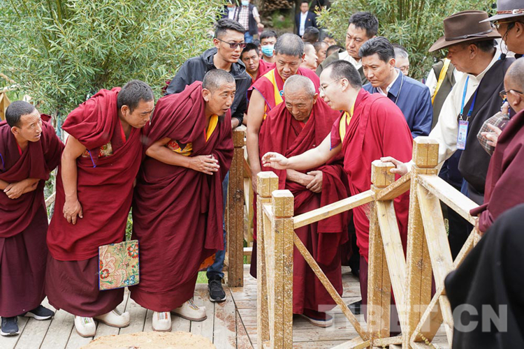 圖為十一世班禪在吞達(dá)村藏香制作園內(nèi) 攝影:王淑