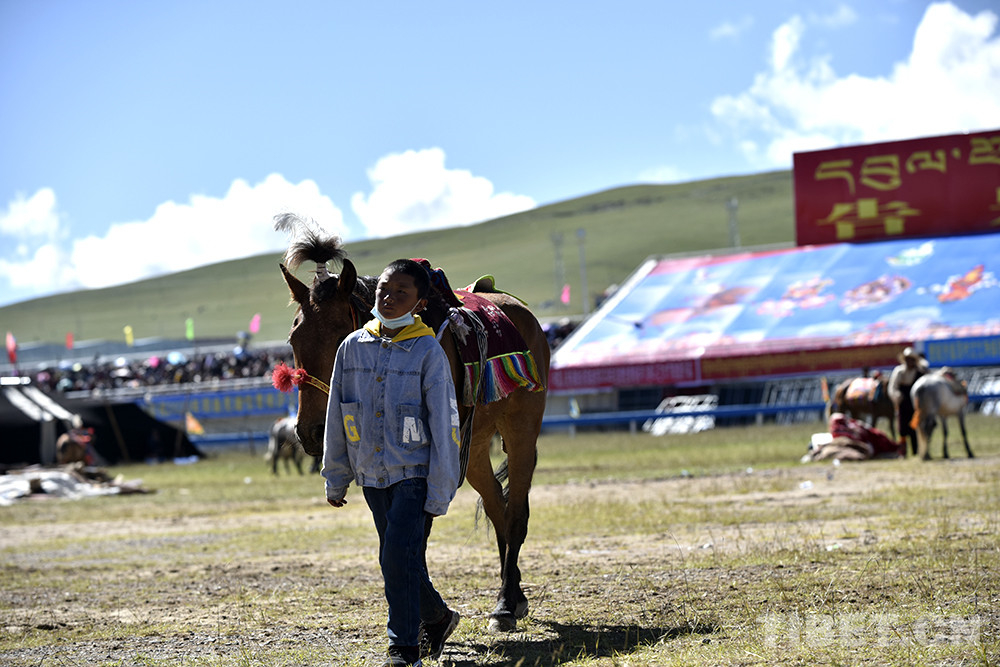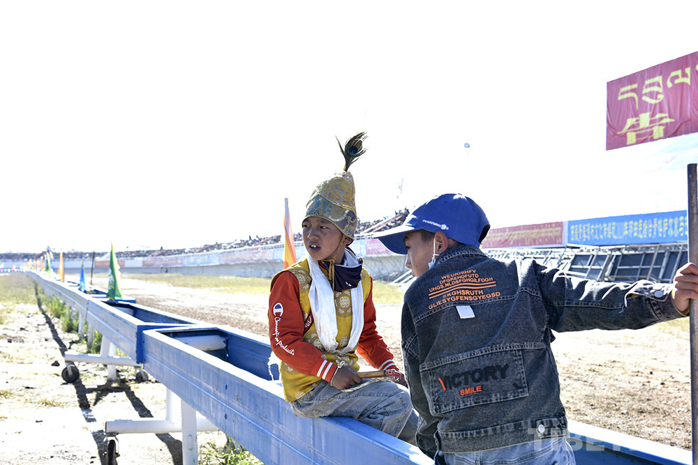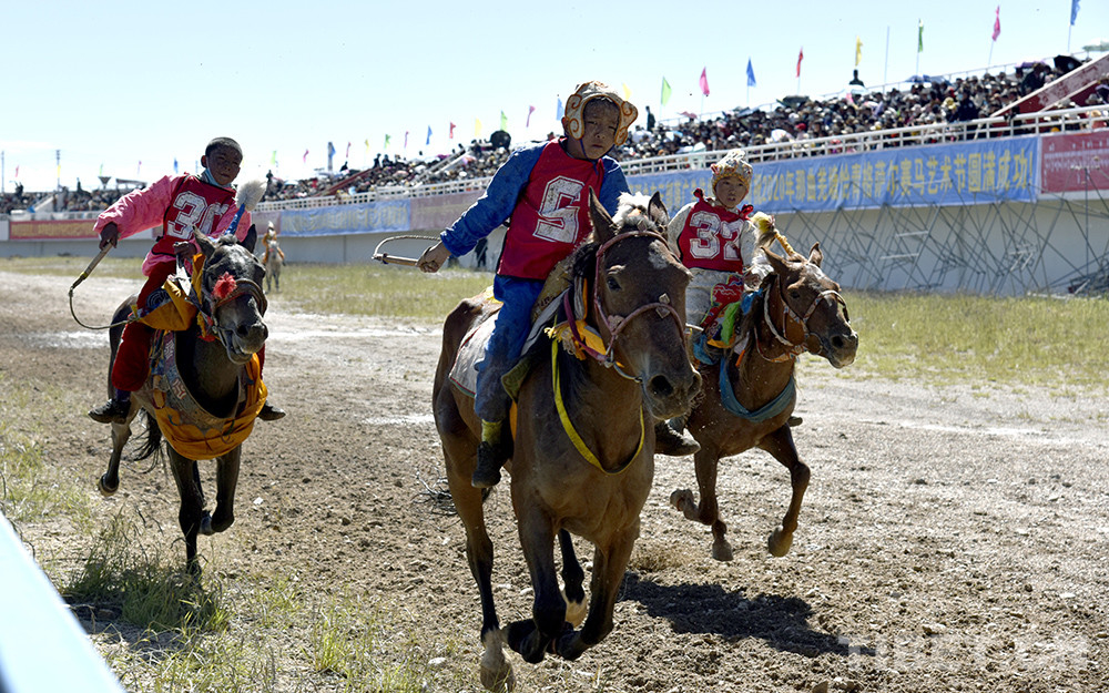 圖為西藏自治區(qū)那曲市2020羌塘恰青格薩爾賽馬藝術(shù)節(jié)場(chǎng)內(nèi)速度賽馬比賽現(xiàn)場(chǎng),一位少年?duì)恐R兒 攝影:王媛媛