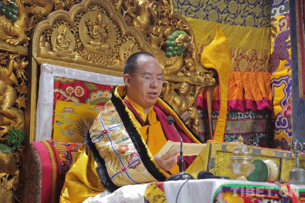 圖為十一世班禪在榮布熱登寺誦經(jīng)祈愿 攝影:王淑