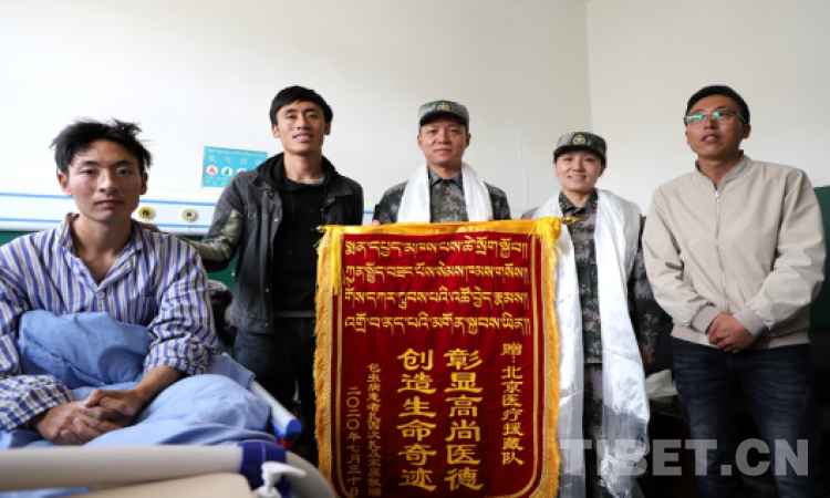 圖為一患者家屬給北京醫(yī)療援藏隊獻(xiàn)錦旗表示感激 攝影:賈華加