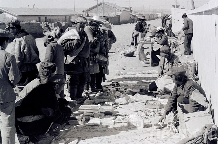 這是在青藏公路進藏第一站的安多縣城,內(nèi)地“候鳥”型新客人擺地攤售賣小商品(唐召明1987年攝)