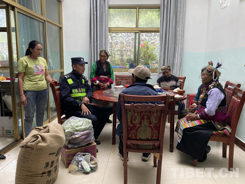 圖為陳塘邊境派出所民警看望夏爾巴群眾聊家常