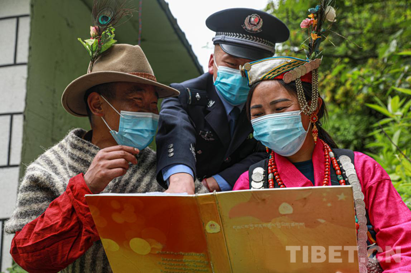 民族團(tuán)結(jié)之花,盛開在共同奮斗的征程上。2019年9月,陳塘邊境派出所獲得由西藏自治區(qū)授予的“2019年西藏自治區(qū)民族團(tuán)結(jié)進(jìn)步模范集體”,這是對陳塘邊境派出所工作的最大肯定?!斑@個榮譽(yù)是陳塘鎮(zhèn)各族人民和我們共同奮斗出來的?!泵窬n金彪說道。以前的陳塘鎮(zhèn)由于與外界交流少,大部分群眾幾乎都是文盲、法盲,易發(fā)生打架斗毆事件,派出所的民警總是第一時間趕到現(xiàn)場,穩(wěn)定形勢,化解矛盾。為解決根本矛盾,派出所在轄區(qū)開展?jié)h語教學(xué),將漢語作為通用語言,慢慢克服語言交流障礙,從解決文盲問題再到解決法盲問題。解決語言不通的根本問題后,派出所民警每周都會在轄區(qū)、學(xué)校進(jìn)行普法宣講,潛移默化地增強(qiáng)群眾的法律意識,隨著時間的推移,如今的陳塘鎮(zhèn)各族人民基本能聽懂漢語,也懂得了一些基本法律,從以前的靠國家政府補(bǔ)貼,到如今的自力更生,這一切都離不開陳塘邊境派出所民警和陳塘鎮(zhèn)各族人民的共同奮斗。