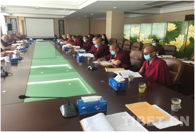 圖為中國藏語系高級佛學(xué)院宗教界學(xué)習(xí)組正在學(xué)習(xí)中央第七次西藏工作座談會精神