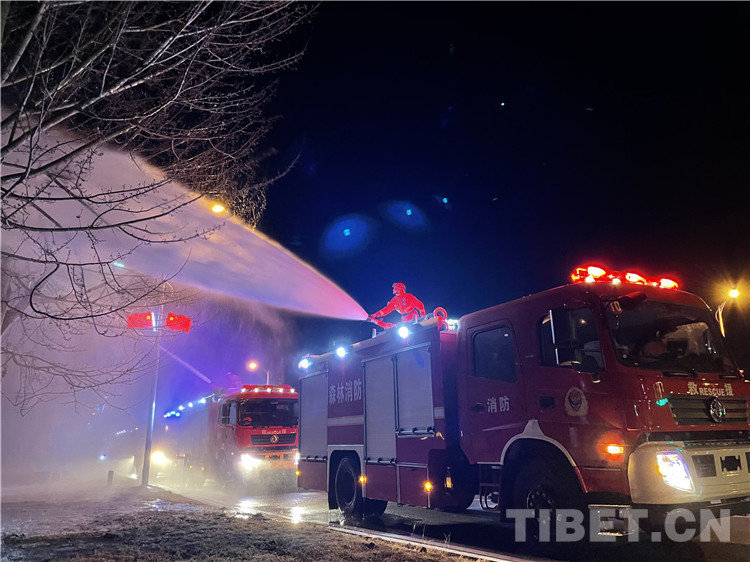 吃完年夜飯,中隊派出巡查小分隊,在各重要道口設立臨時防火檢查站,在加油站周邊派出巡邏小組,并使用消防水車對加油站周邊重點林區(qū)進行灑水增濕,確保將火災隱患消滅在萌芽狀態(tài),保障人民群眾度過一個平安、團圓的除夕夜。(中國西藏網(wǎng) 通訊員/郭博文 索朗旺久 圖片由西藏森林消防總隊林芝支隊巴宜區(qū)中隊提供)