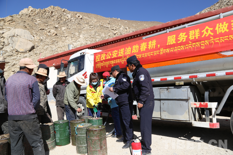 因拉孜縣彭措林鄉(xiāng)、扎西崗鄉(xiāng)地處偏遠(yuǎn),村民購買柴油困難,拉孜縣公安局及時與相關(guān)部門和中國石油拉孜分公司溝通協(xié)調(diào),適時掌握群眾用油需求,成立了拉孜公安送油小分隊,指派專職民警跟著油車送油助春耕,將便民、惠農(nóng)服務(wù)延伸到田間地頭,讓群眾不出村就可以加到放心的柴油。