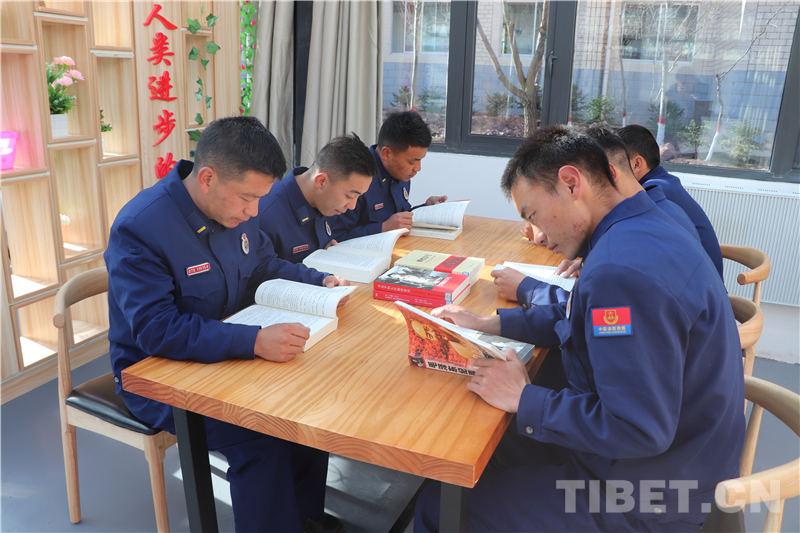 圖為西藏昌都市卡若區(qū)森林消防中隊(duì)學(xué)習(xí)黨史書(shū)籍