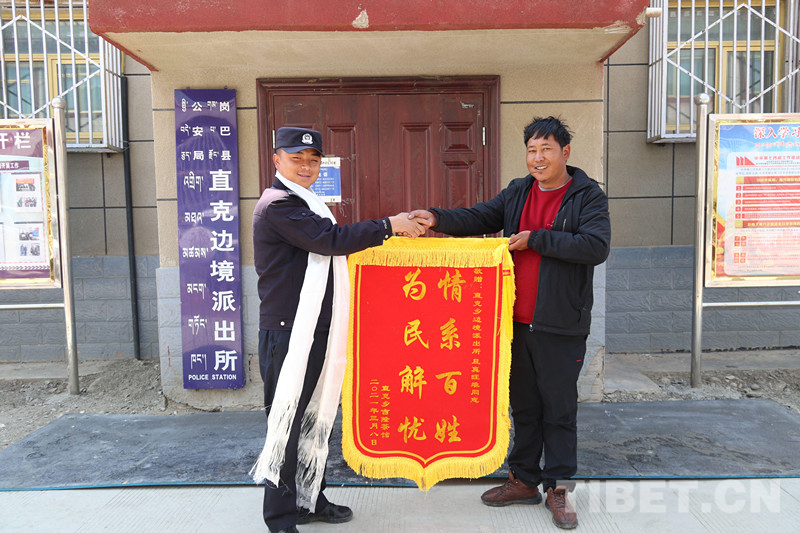 “真是太感謝你們了,如果沒(méi)有你們的及時(shí)幫助,我不知道我這茶館還在不在了”,4月13日,西藏日喀則市崗巴縣直克鄉(xiāng)吉隆茶館的邊巴將一面印有“情系百姓、為民解憂”錦旗送到西藏日喀則邊境管理支隊(duì)直克邊境派出所,以表達(dá)對(duì)派出所民警旦真旺堆同志英勇救火的感激之情和崇高敬意。