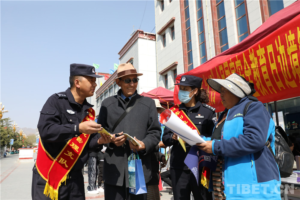 “12339,是國家安全機關受理公民和組織舉報電話。這條熱線是由國家安全部設立的,為了方便公民組織向國家安全機關舉報行為或線索?!痹谖鞑厝湛t市的街頭,日喀則邊境管理支隊民警達娃卓嘎為過往群眾講解“全民國家安全日”的相關知識。