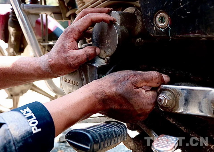 如果你經(jīng)過日喀則邊境管理支隊(duì)陳塘邊境派出所頓樟執(zhí)勤點(diǎn),你有可能會(huì)在執(zhí)勤點(diǎn)旁邊的空地上看見一位不停揮舞著扳手,雙手沾滿機(jī)油的民警正圍著摩托車忙碌著。他叫王昱隆,是陳塘邊境派出所的一名民警,年初被分配到頓樟執(zhí)勤點(diǎn),到現(xiàn)在他已經(jīng)義務(wù)幫助不少地過往行人維修摩托車了。