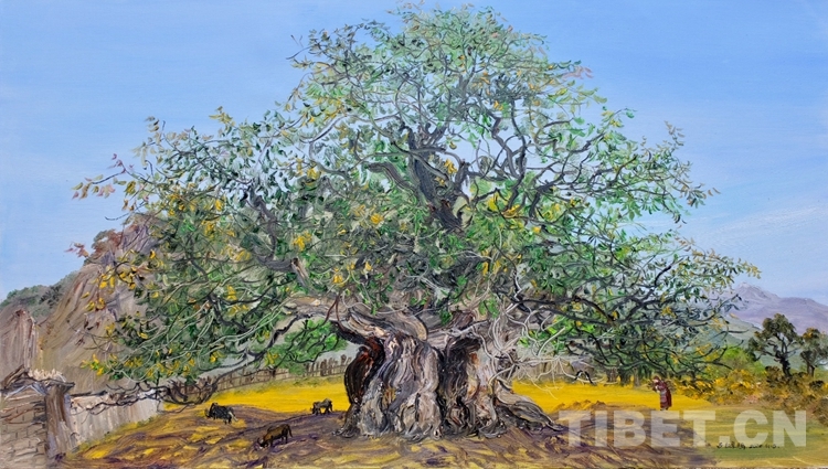 “展覽的油畫創(chuàng)作大多是在寫生現(xiàn)場(chǎng)完成的,她的藝術(shù)風(fēng)格也清新生動(dòng)。她以自己的寫生作品,令觀眾共享融入自然的至純大美,這是一種平易近人的審美方式?!眹?guó)家一級(jí)美術(shù)師余有心評(píng)價(jià)說(shuō),子白特別善于畫樹,她的一幅幅佳作就是這些千年古樹的肖像,借審美而參悟自然生態(tài)的奧妙,帶觀眾領(lǐng)會(huì)高原生態(tài)文明之真諦。