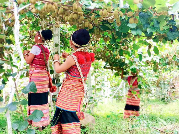 圖為僜人婦女在獼猴桃園里采摘 圖片由高永徐提供