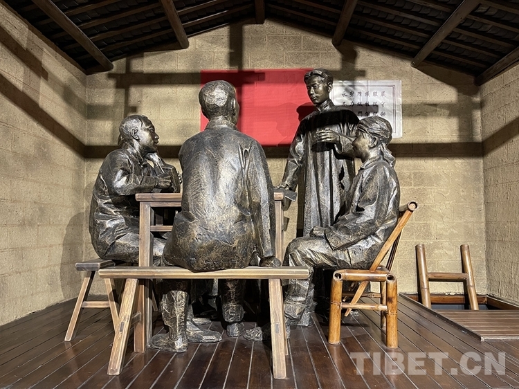 中國(guó)西藏網(wǎng)訊 湖南韶山,紅色圣地。韶山市深挖紅色文化資源,依托毛澤東同志故居、紀(jì)念館和中共韶山特別支部歷史陳列館等景點(diǎn),打造了28個(gè)常學(xué)常新的愛國(guó)主義和黨性教育生動(dòng)課堂。(中國(guó)西藏網(wǎng) 記者/楊眉笑)圖為中共韶山特別支部歷史陳列館入口處的雕塑,底座書寫“為有犧牲多壯志 敢教日月?lián)Q新天”。