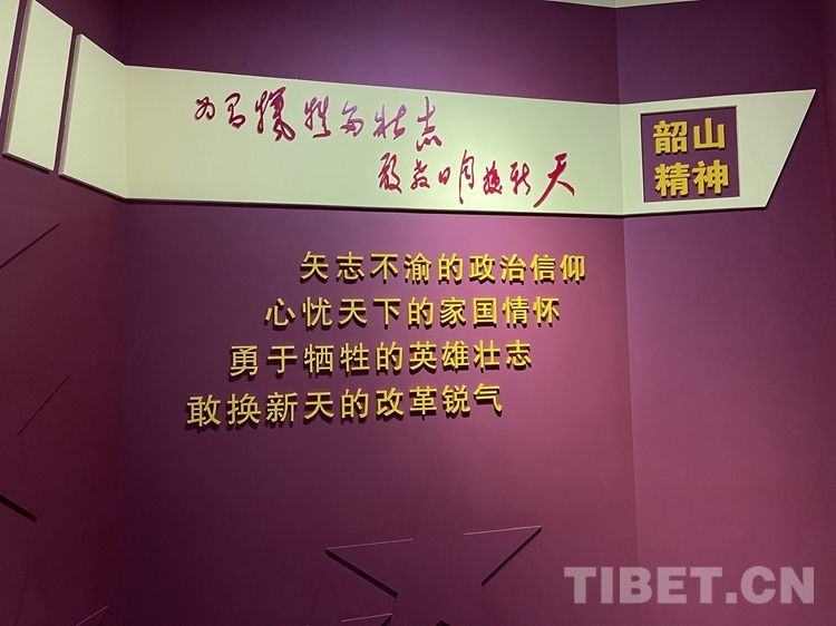1959年6月25日,毛澤東回到韶山,在松山一號(hào)樓寫下《七律·到韶山》,將韶山精神概括為“為有犧牲多壯志 敢教日月?lián)Q新天”。圖為陳列館內(nèi)對(duì)韶山精神的標(biāo)語(yǔ)總結(jié)。