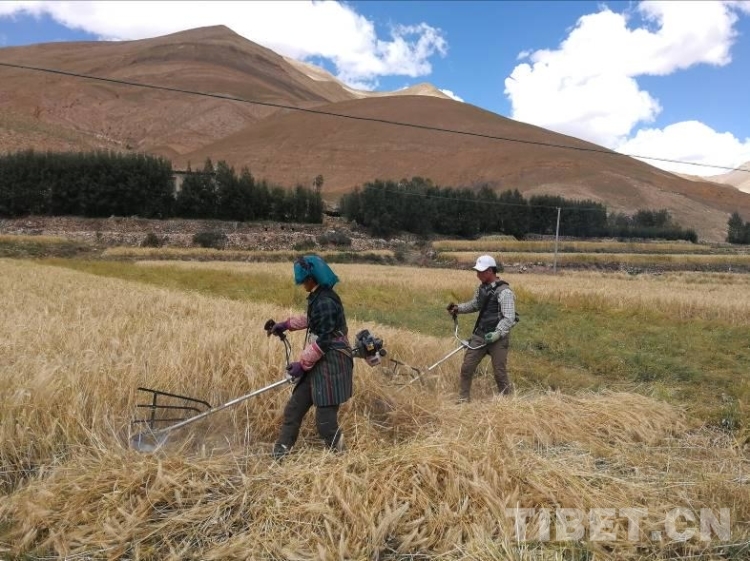 拉木堆村位于西藏自治區(qū)日喀則市定日縣扎西宗鄉(xiāng)西北約6公里,平均海拔4280米,由于地域偏僻和高寒缺氧,長(zhǎng)期以來(lái)社會(huì)生產(chǎn)力較為落后,青稞早已是村民們物質(zhì)生活的核心內(nèi)容。2017年的3月份薩央節(jié)期間,村民們身著民族盛裝,載歌載舞,唱著頌歌行繞田頭,祈求著秋天的豐收。為確保秋收順利和提高農(nóng)業(yè)機(jī)械化水平,我們工作隊(duì)和村兩委班子經(jīng)過(guò)認(rèn)真商議,2017年9月初專程前往日喀則為每一戶村民購(gòu)置了收割機(jī)。