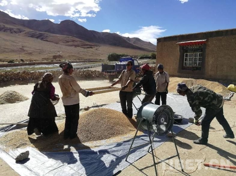 工作隊(duì)根據(jù)在前期深入群眾家中和田間地頭了解到的“孤困寡”等人群在秋收中存在勞動(dòng)力緊缺等問(wèn)題,號(hào)召全體駐村隊(duì)員和村黨員干部組成青稞秋收黨員志愿服務(wù)隊(duì)自2017年9月13日起,對(duì)村孤寡戶、缺乏勞動(dòng)力戶及特困戶進(jìn)行秋收幫扶,僅用3天就完成困難戶的收割,解決了他們勞力緊缺的燃眉之急。9月底,拉木堆村的秋收工作已經(jīng)進(jìn)入收尾階段。村民們都說(shuō),今年因?yàn)橛惺崭顧C(jī),收割時(shí)間比去年縮短了兩天。當(dāng)全村408畝青稞全部收割完畢,堆置田地中晾曬。聽(tīng)說(shuō)今年糧食產(chǎn)量預(yù)計(jì)將比上年增收10%左右,再創(chuàng)新高,從干部到群眾,人人樂(lè)開(kāi)了花。