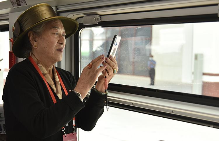 圖為6月25日拉薩開往林芝的D2021次動車組列車即將抵達林芝,乘客在列車上拍照 攝影:王媛媛