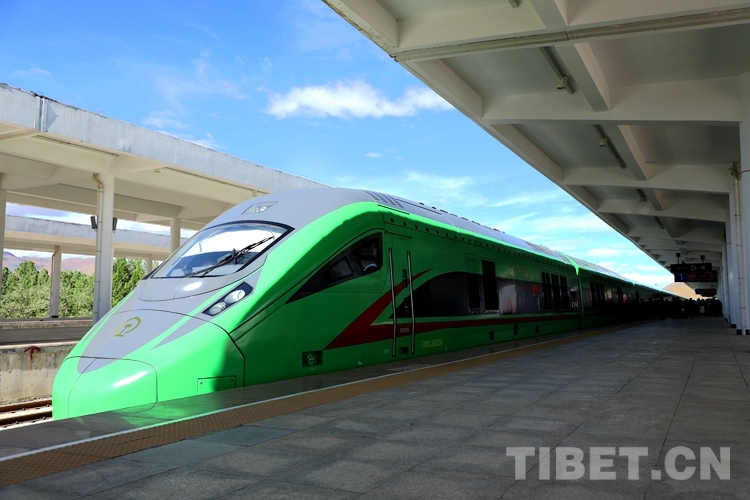 中國(guó)西藏網(wǎng)訊 6月26日上午8時(shí)整D8991次動(dòng)車組列車從拉薩火車站駛出向日喀則進(jìn)發(fā),當(dāng)日上午10時(shí)35分“綠巨人”復(fù)興號(hào)駛?cè)肴湛t火車站,日喀則也迎來(lái)“復(fù)興號(hào)”時(shí)代。