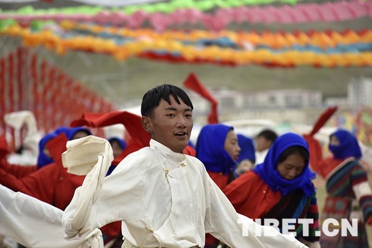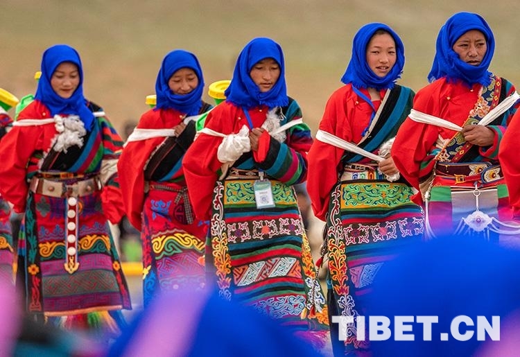 圖為7月25日,班戈縣第七屆納木錯文化旅游民俗風(fēng)情賽馬藝術(shù)節(jié)開幕式上的文藝表演 攝影:王媛媛