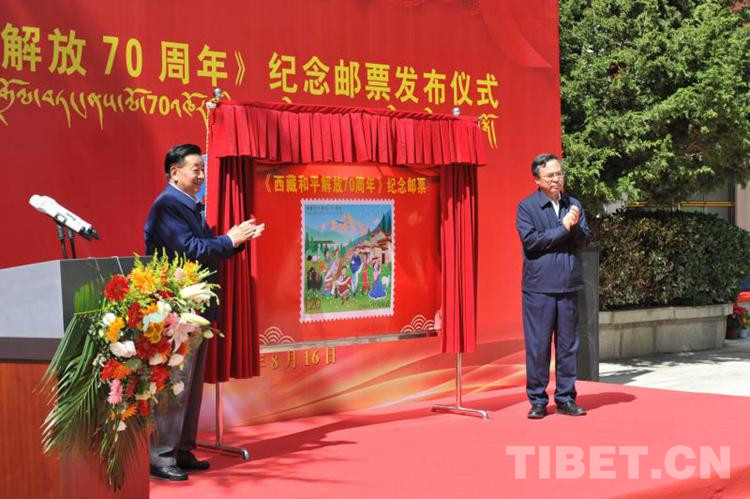 中國西藏網(wǎng)訊 8月16日下午,《西藏和平解放70周年》紀念郵票發(fā)布儀式在西藏自治區(qū)拉薩市舉行。