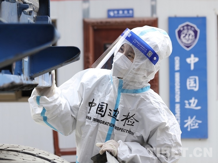 圖為身穿防護(hù)服的趙雪瑩在工作 攝影:索朗次仁