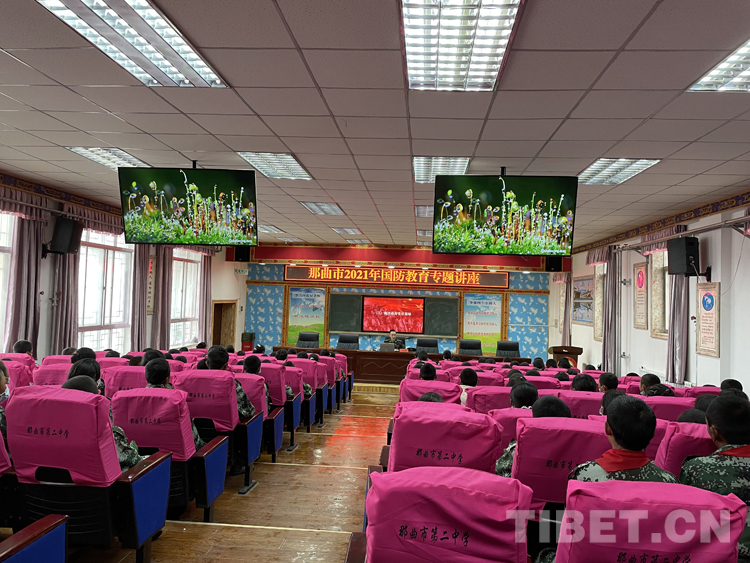 當(dāng)日下午,邀請那曲軍分區(qū)干部走進校園為那曲市二中學(xué)生開展一次國防教育專題講座。專題講座開始前,首先由七年級格桑次仁和巴桑旺姆同學(xué)為大家深情朗誦《請黨放心 強軍有我》,一首詩詞朗誦把大家緩緩帶入課堂。由那曲軍分區(qū)唐鵬同志運用豐富的知識和大量史實,圍繞國防教育的重要意義等內(nèi)容為大家作了一場精彩的講座,利用媒體視頻、圖片資料給師生們講解了我國國防現(xiàn)狀、國防建設(shè)的重要作用,讓學(xué)生掌握基本軍事知識技能,加深對軍隊的認識和理解,整個講座旁征博引,數(shù)據(jù)翔實,觀點敏銳,既有清晰的歷史脈絡(luò),又有具體事件的介紹,在同學(xué)中引起了強烈共鳴。