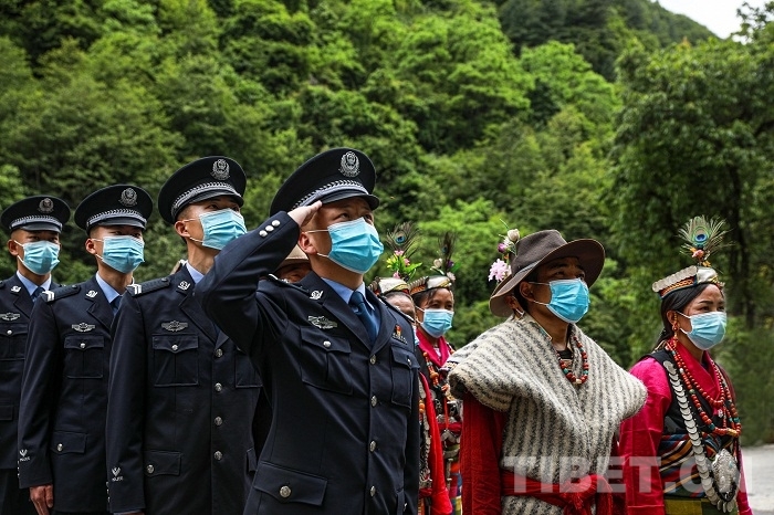圖為2020?年?9?月?16?日 陳塘邊境派出所民警和夏爾巴群眾一同升國(guó)旗
