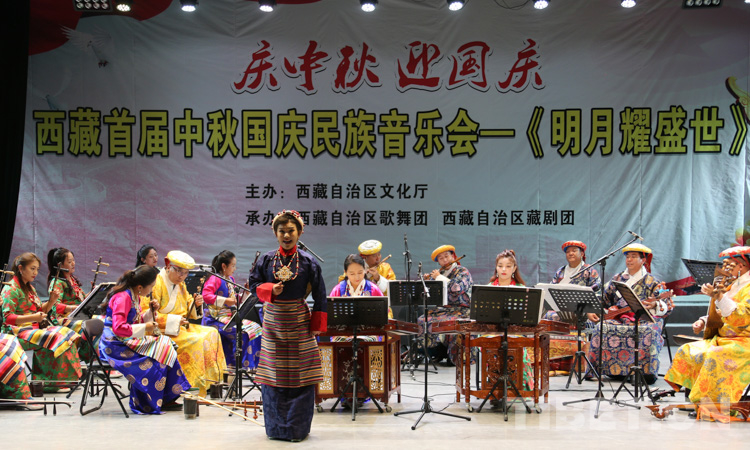 中國西藏網訊 器樂齊奏、堆諧奔放、歌曲悠揚……9月25日晚,一臺以“享民樂美、敘佳節(jié)情”為主題的民族音樂會——《明月耀盛世》在西藏自治區(qū)藏劇團上演。作為西藏自治區(qū)首屆中秋國慶民族音樂會,音樂會營造了濃厚喜慶的節(jié)日氛圍。