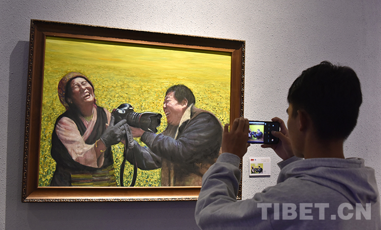 圖為第四屆雪域情西藏油畫展展覽畫作 攝影:王媛媛