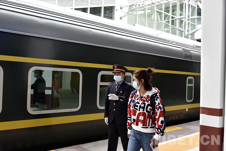 圖為羅布在站臺(tái)為出行旅客服務(wù) 攝影:王媛媛