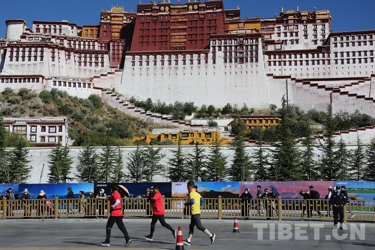 圖為選手經(jīng)過布達拉宮進行最后的沖刺 攝影:王佳豪