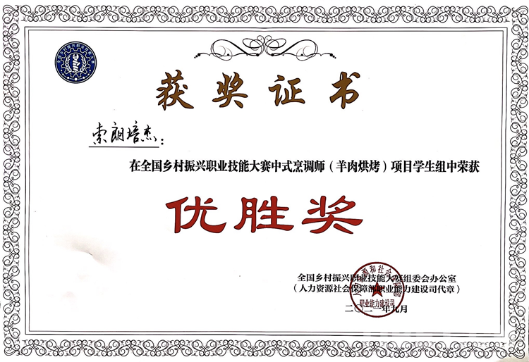 圖為獲獎證書 西藏現(xiàn)代服務業(yè)技工學校供圖