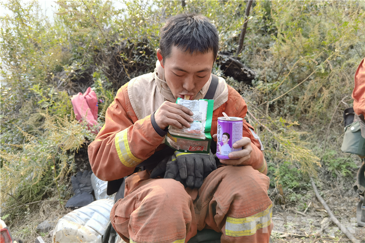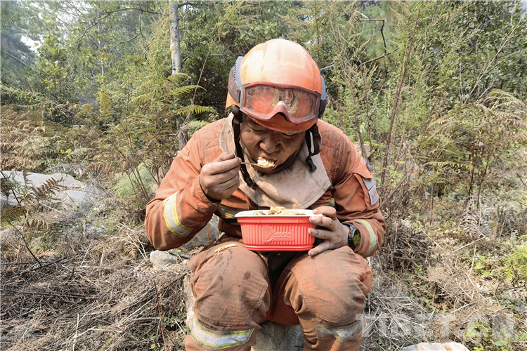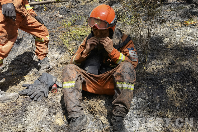 連日來,在火場(chǎng)上,席地而睡的消防員和寧吃干糧不拿群眾“一針一線”的消防員隨處可見。(中國(guó)西藏網(wǎng) 通訊員/張強(qiáng) 夏明勇)