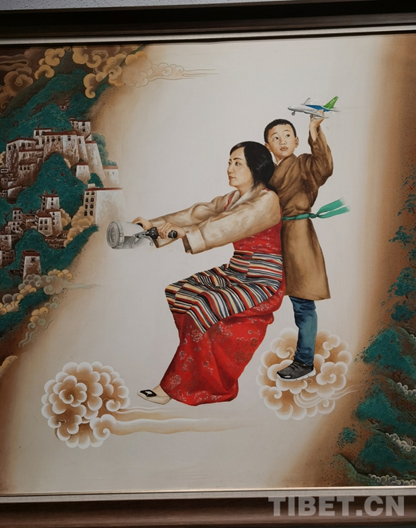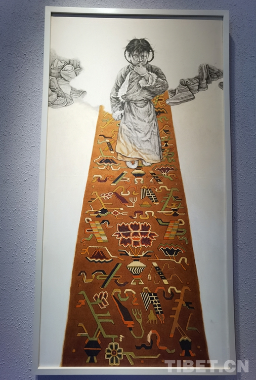 此次展覽共有39位藝術(shù)家的70多幅作品展。藝術(shù)家們在繼承西藏傳統(tǒng)的藝術(shù)形式上,利用西藏特殊元素引入各種畫種之中,并引入新的題材,讓其變得十分廣泛,同時(shí)也融合了油畫、水墨畫、水彩、雕塑等。