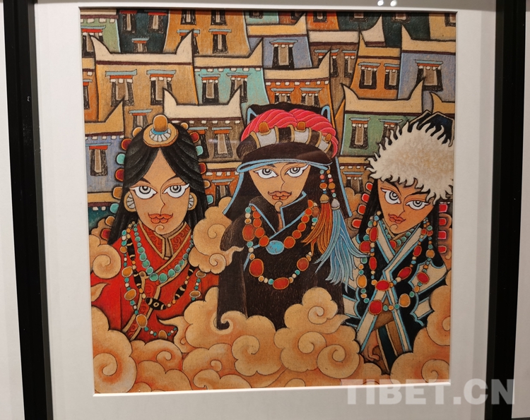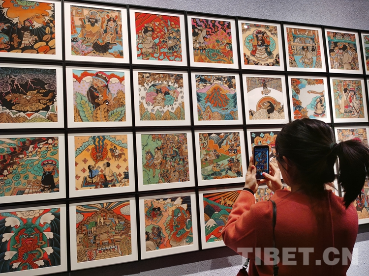圖為西藏當(dāng)代美術(shù)作品精品展現(xiàn)場展品 攝影;王淑