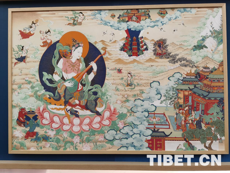 唐卡作為藏民族文化中一種獨(dú)具特色的繪畫藝術(shù)形式,題材內(nèi)容涉及諸多領(lǐng)域的藏族“百科全書”,是中華民族民間藝術(shù)中彌足珍貴的非物質(zhì)文化遺產(chǎn)。此次展出的新唐卡,以輕靈的姿態(tài)融入社會(huì)、融入市民生活,把內(nèi)在和善吉祥之美奉獻(xiàn)給觀眾,這種新表達(dá),讓人耳目一新。