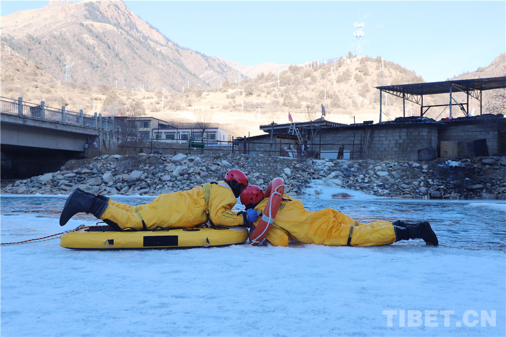 昌都市江達縣森林消防中隊針對當(dāng)前有可能擔(dān)負的冰雪救援災(zāi)害救援工作,未雨綢繆、嚴陣以待,把冰雪災(zāi)害救援能力作為年度訓(xùn)練要點。圖為西藏森林消防總隊昌都支隊江達中隊進行模擬救援